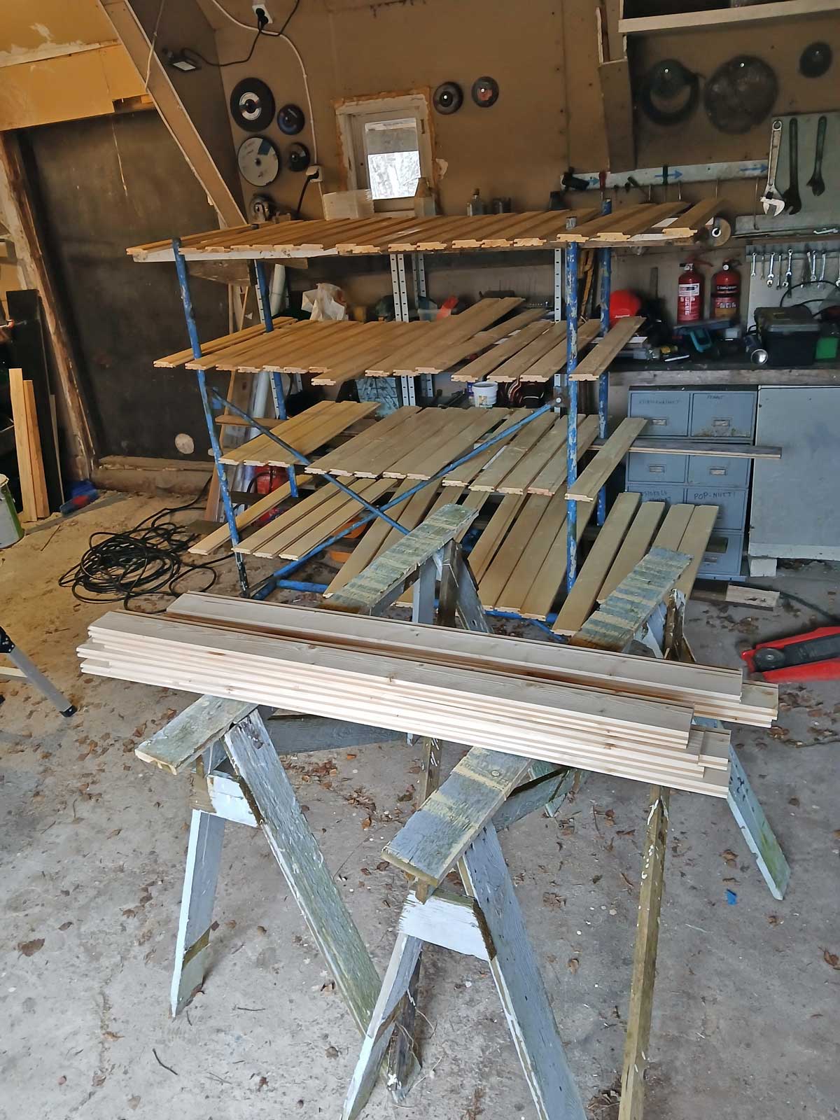 Aina joskus pääsee meikäläinenkin, haalariduunari, etätyöhön. Kun nyt on taas kerran tehtävänä jonkinlainen roskisten aitaus niin voihan hommasta osan tehdä kotonakin. Lautaa pätkiksi ja maalia pintaan, tämän lähemmäksi ns etätyötä ei näissä hommissa pääse. Mutta on se mukavaa, kun voi touhuilla ihan kaikessa rauhassa, käydä kahvilla ja lisäämässä hellaan puita ihan omaan tahtiinsa ja tarpeen mukaan. Eikä tule ohikulkijoita neuvomaan että eikös tuo olisi kannattanut laittaa noinpäin ja onko tuo maali varmasti luonnonmukaisesti viljeltyä ja itsestäänhajoavaa ja mitäs maksaisi jos tekisit mullekin noin niinkun ystävänkauppana tuommoisen -voisin sitten oikein saunaillan tarjota joskus syksymmällä...
