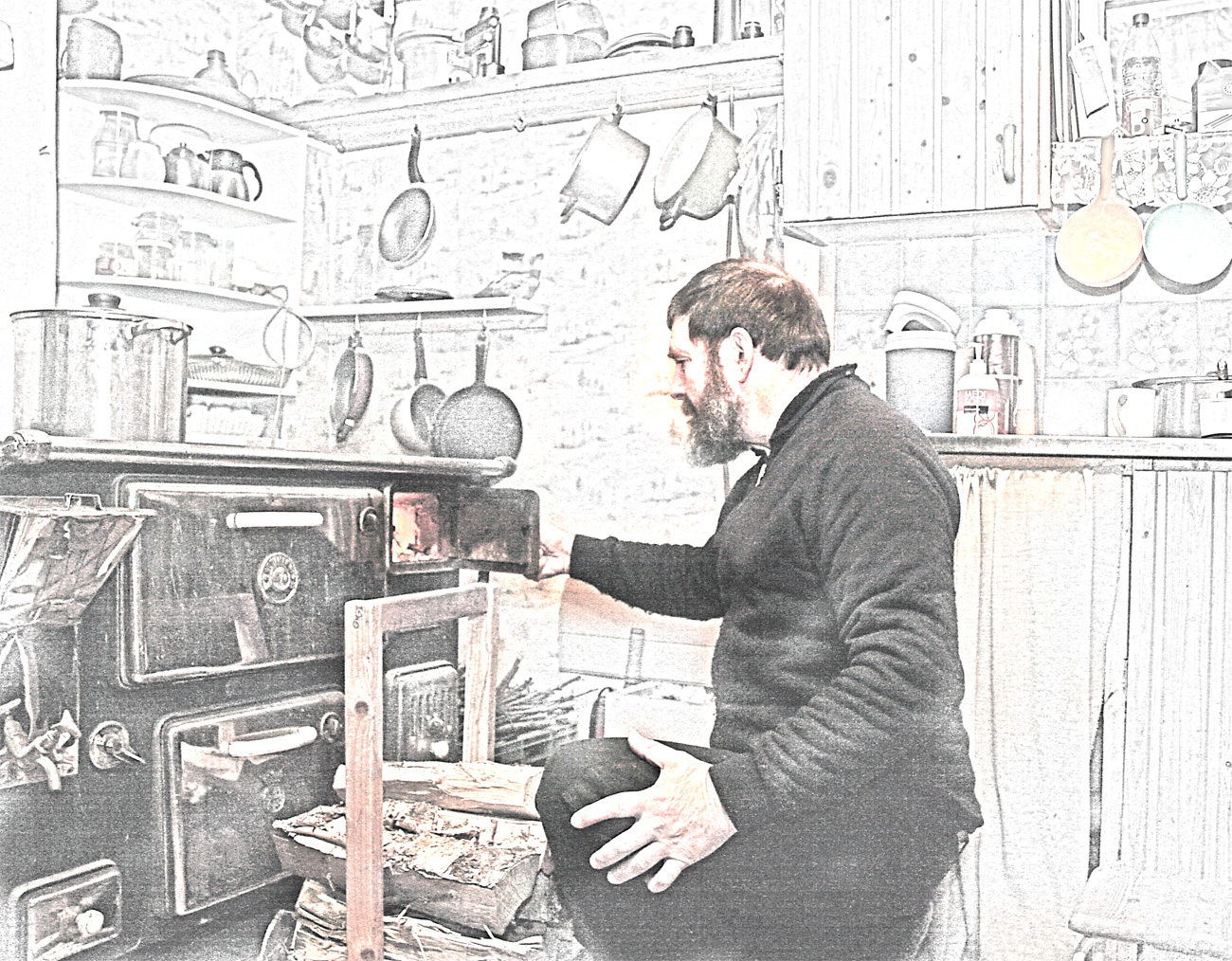 Facebookkia lueskellessani näin juuri kuvan maalaistorpan keittiöstä; puuhella, vieressään sähköliesi, kaapiston päällä rivi kuparipannuja koristeena ja siistiä harmoniaa. Ja kysymys kuvan lähettäjältä; elääkö kukaan muu enää näin alkeellisesti?