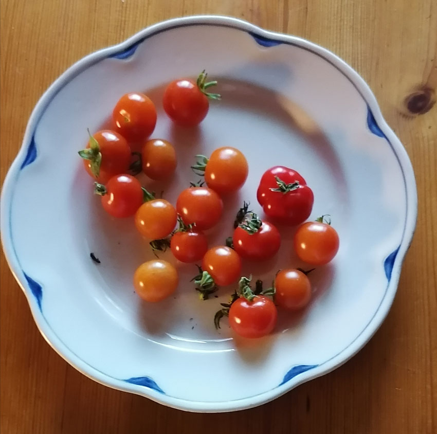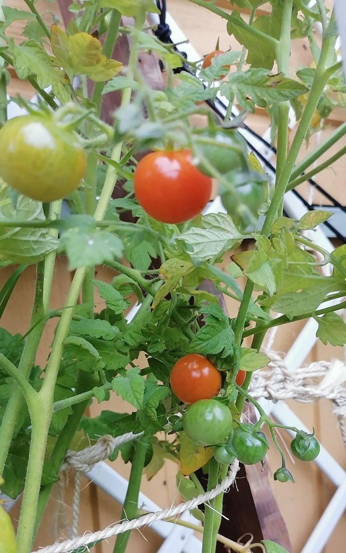 Kovin on pienenpuoleista, mutta miniksi tätä lajiketta kuvattiinkin. Tertut alkoivat vihdoin ja viimein tuottamaan hedelmää ja jopa punastumaan. Alun kylmä kausi verotti osaltaan lähtölaskentaa.