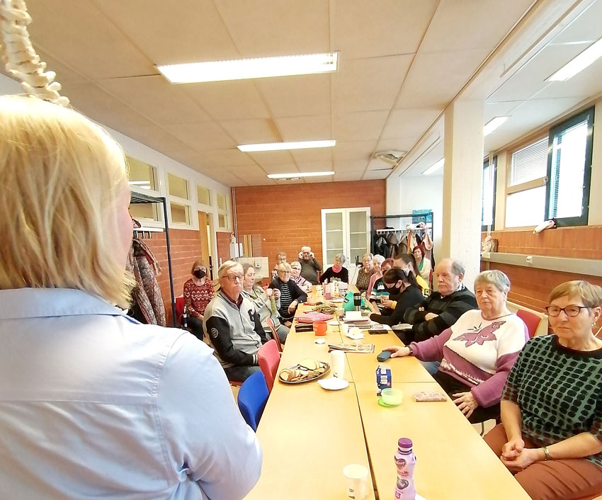 Satakunnan Selkäyhdistys ry:tä edustava Nieminen kertoi miten meitä kaikkia kannattelee selkärangan 24 nikamaa ja kaikilla niillä on oma virkansa. Hän kävi seikkaperäisesti läpi nikamien liikeratojen tärkeyden.